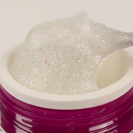 Mixed glitter particles embedded in a white‑mix base – ideal for bold and glamorous nails.