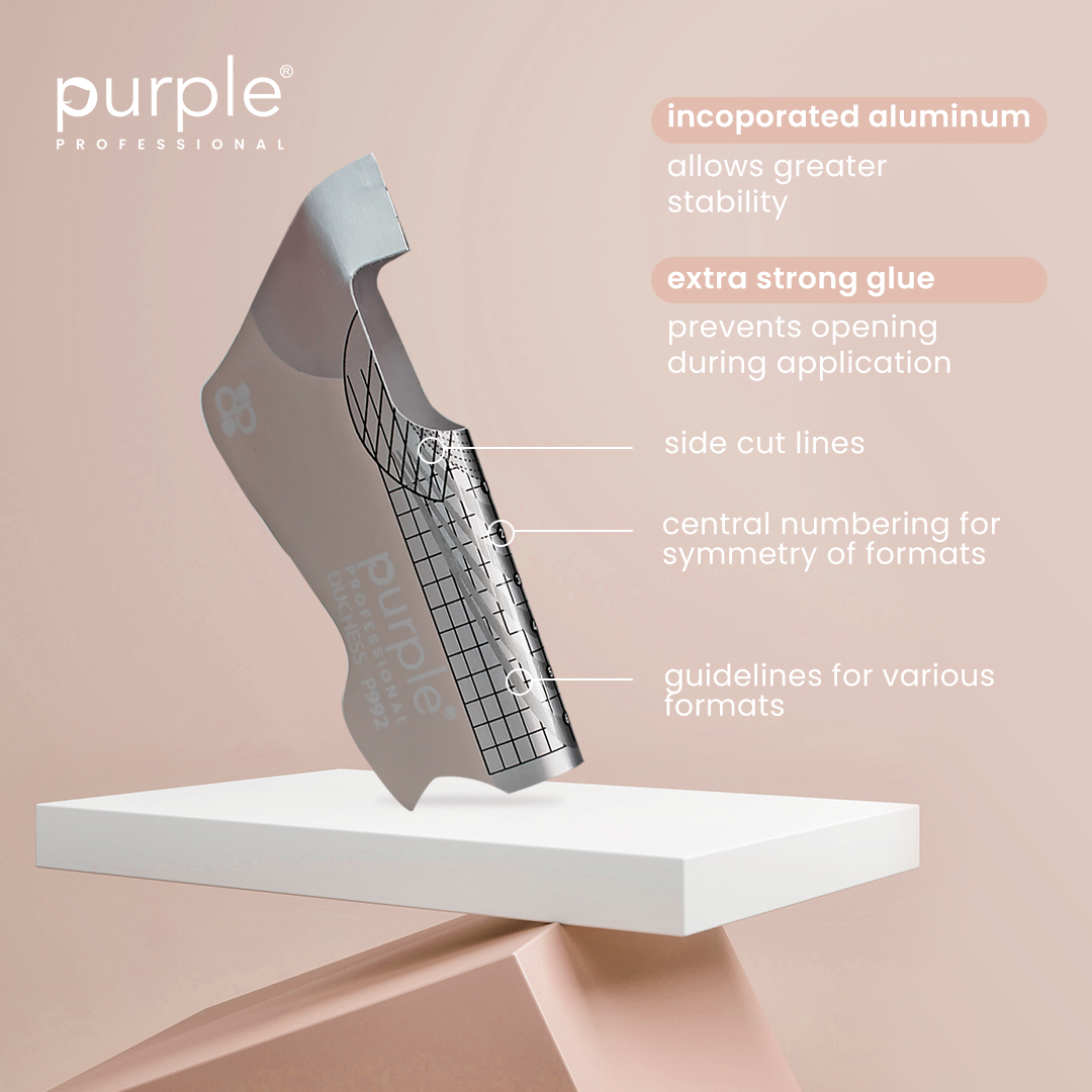 Het beschikt over centrale nummering en gidsen voor het creëren van alle soorten nagelvormen en -maten. Speciaal ontwikkeld voor nagels met een vierkantere hyponychium-zone en geen diepte.