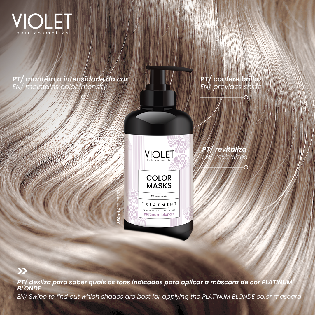 Haarverfmasker dat intens voedt, revitaliseert en highlights intensiveert. Met collageen en macadamia-olie. Verkrijgbaar in zes kleuren en 250 ml inhoud.
