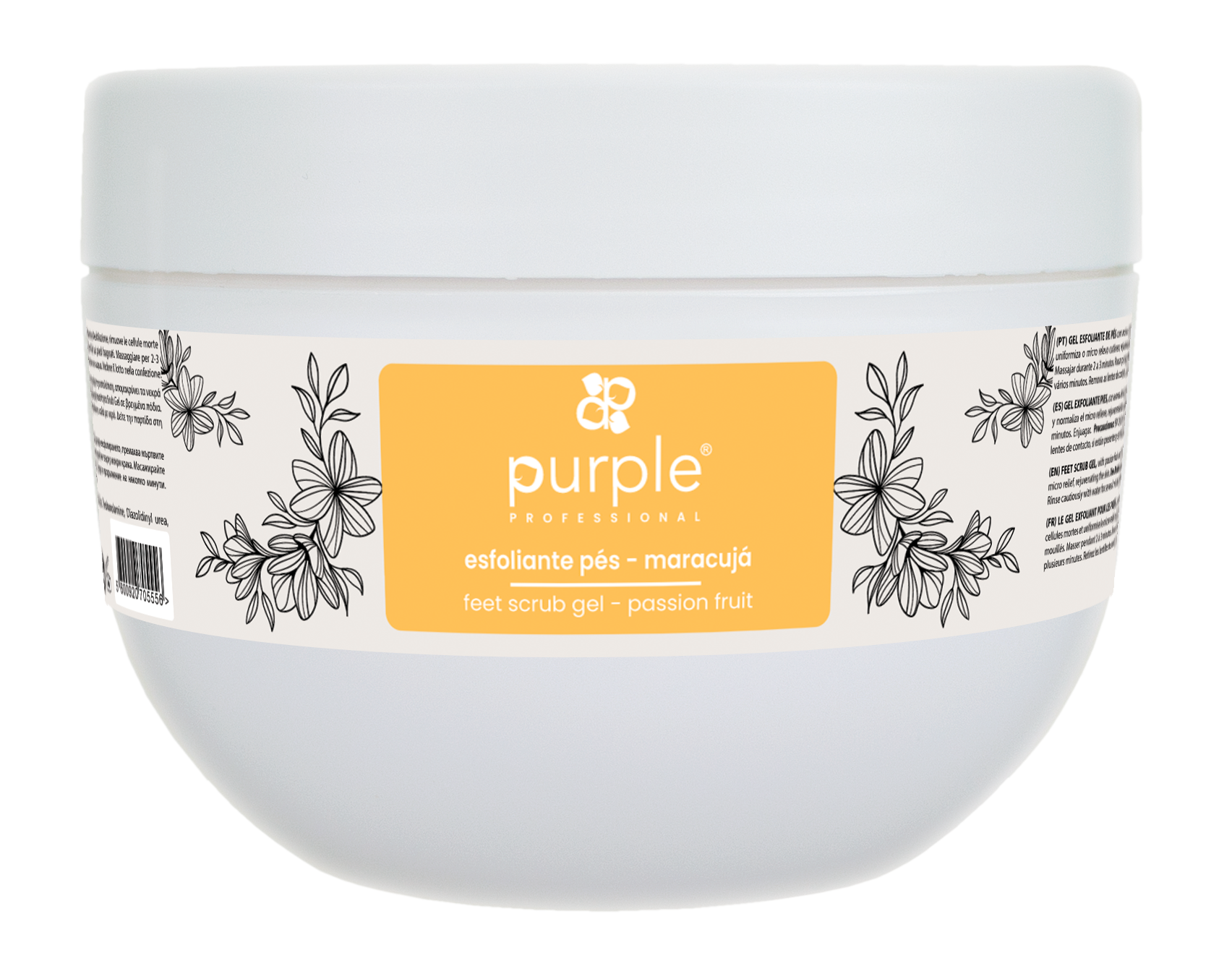 Exfoliërende voetgel met passievruchtaroma, samengesteld met aluminiumoxide dat exfoliatie bevordert, dode huidcellen verwijdert en het microreliëf van de huid egaliseert, waardoor de huid verjongt.