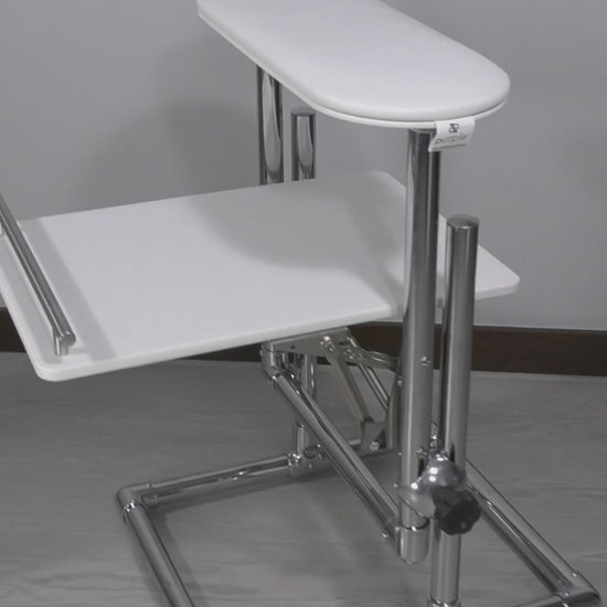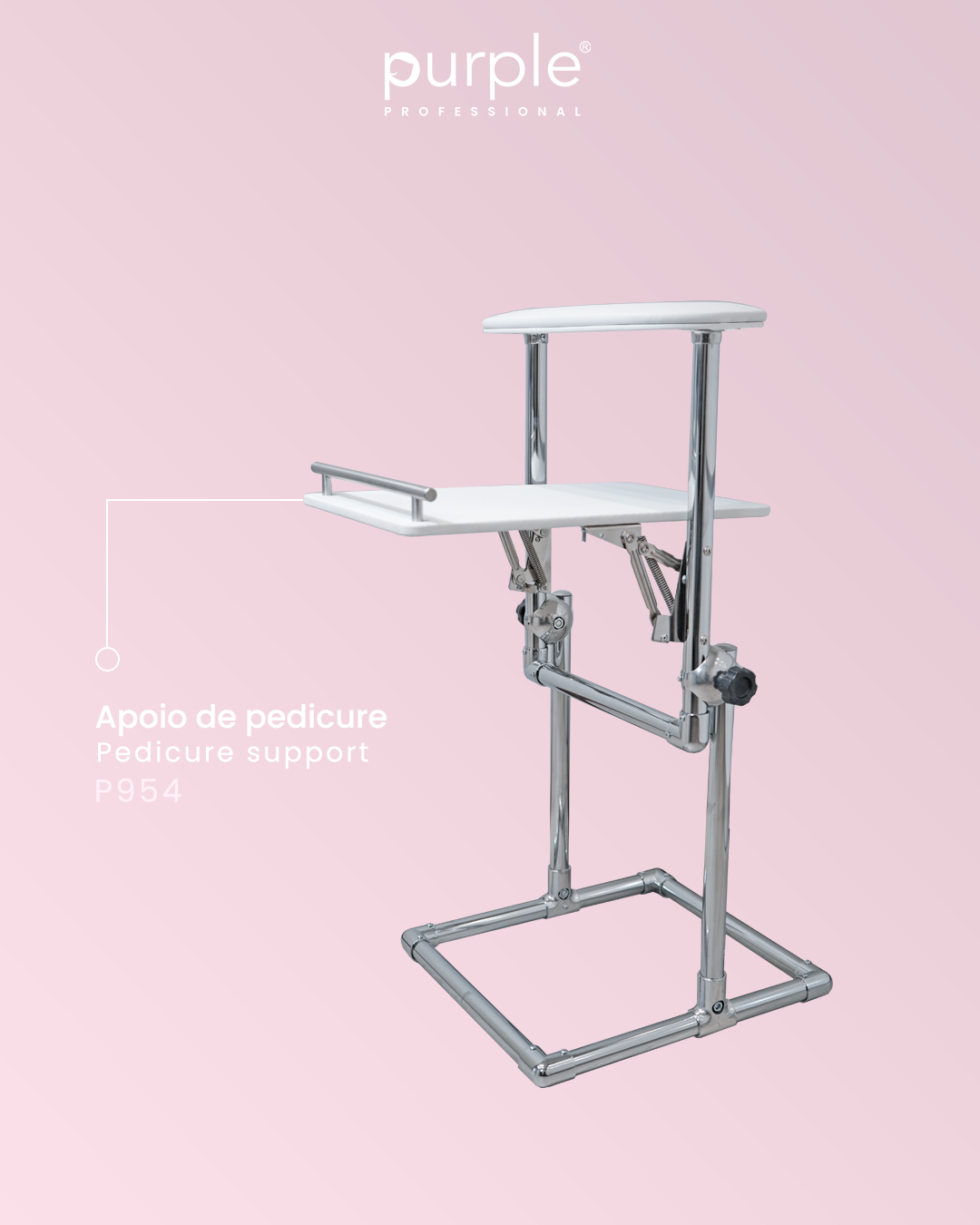 Pedicure support: adjustable height and angle for technician comfort.
