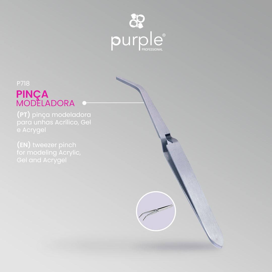 Pinch Tweezer for Acrylic Nails by Purple Professional is a precision tool designed to achieve the perfect “C-curve” in acrylic extensions. Its reinforced sides permit equal pressure along the nail’s shoulders, supporting seamless sculpting and maintaining ideal curvature from base to tip.