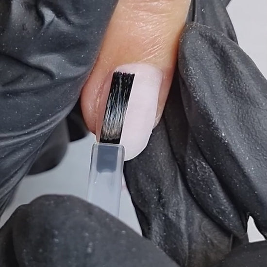 Dip your acrylic brush into the monomer liquid, then into the “Fluffy Pink” powder to form a bead of the mixture.