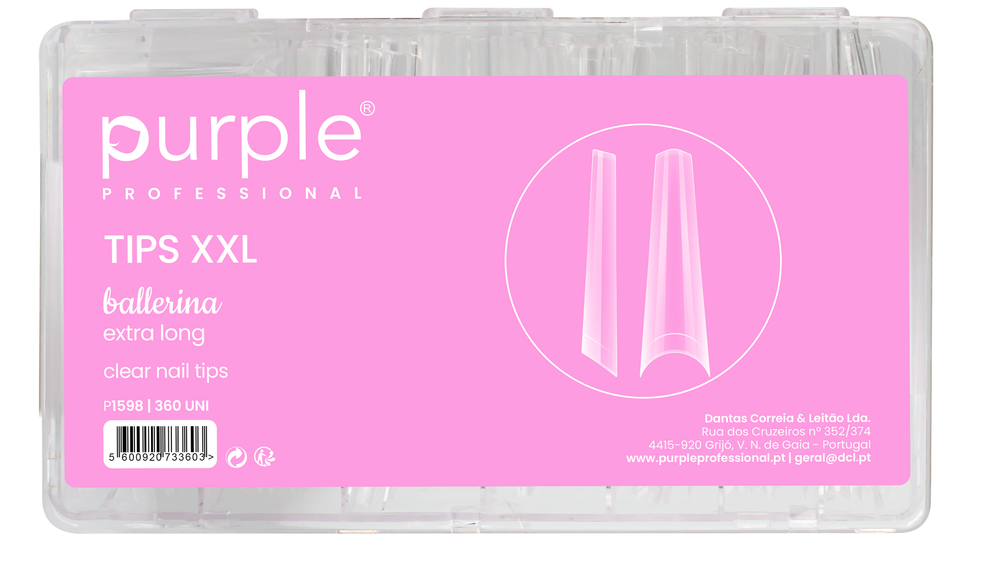 XXL Extra Long Ballerina Clear Nail Tips by Purple Professional feature the iconic ballerina (coffin) shape in an extra-long version. Crafted for professional use, they provide superior durability, transparency, and perfect adhesion for elegant, statement nail designs.