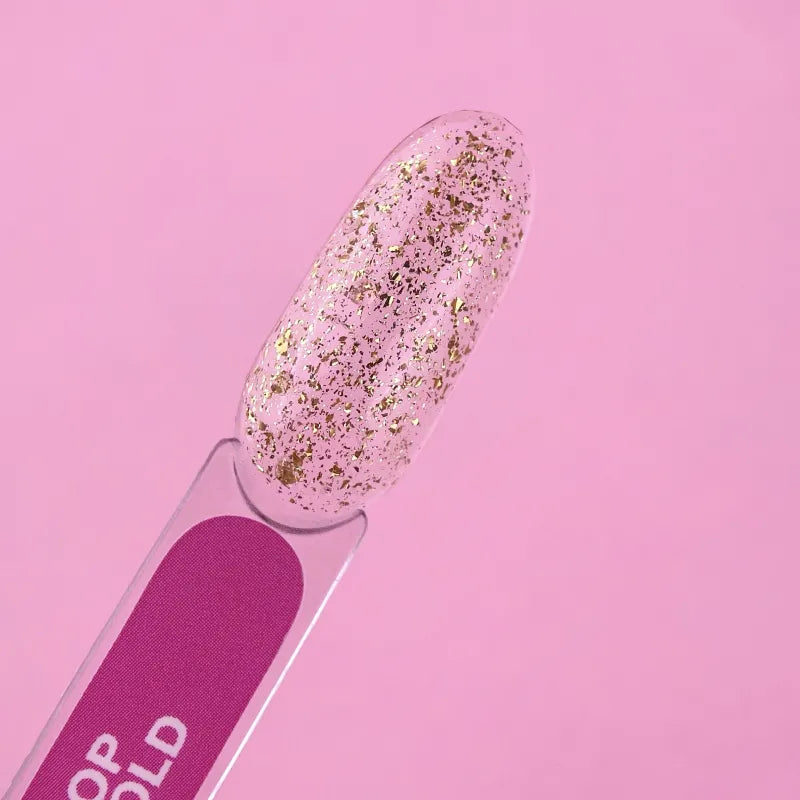 Top Gold is a no-wipe top coat with glitter that pairs effortlessly with any nail color. It adds a luxurious and unique touch to your manicure.