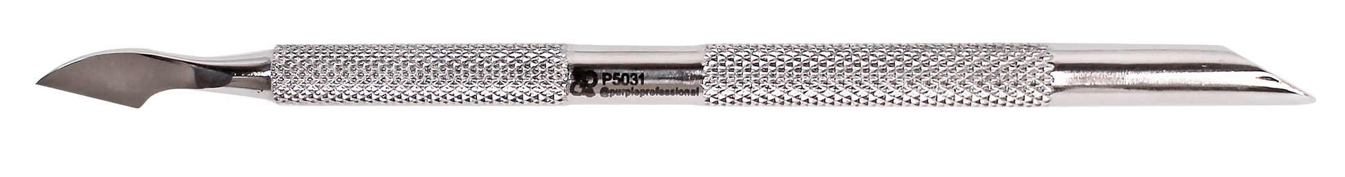 Premium Rounded Stick and Inclined Blade 15 by Purple Professional is a versatile professional tool with a rounded stick on one end and an inclined blade on the other. Made from stainless steel, it ensures precision when cleaning the nail plate or removing cuticle residues with control and safety.